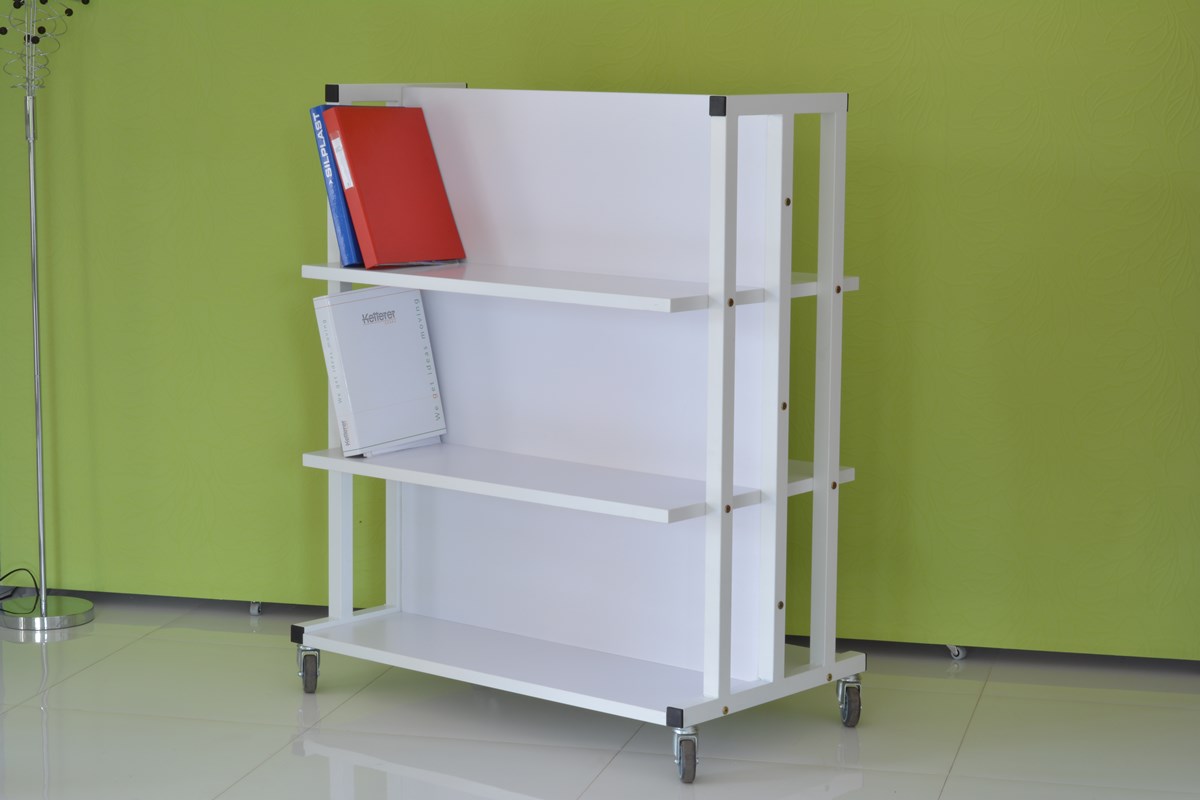 Mobile book case is a very useful furniture for any workplace. The quantity of shelves and the size can be chosen by the client.
