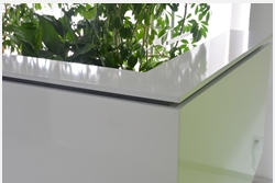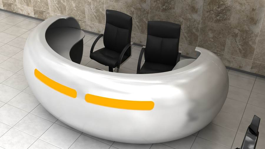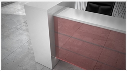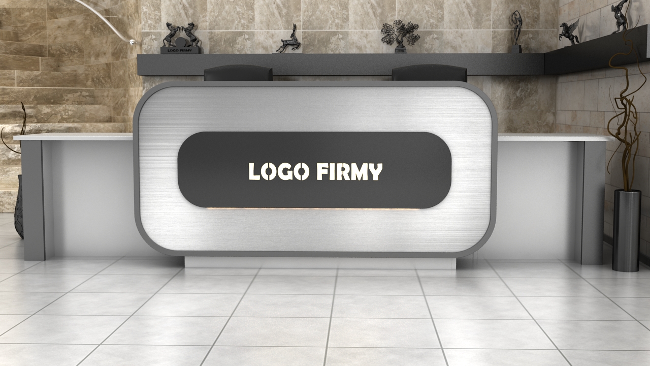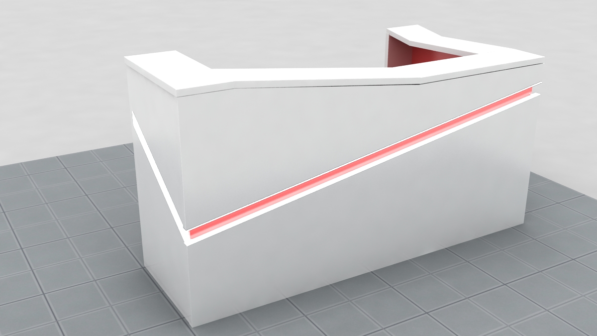 The PRESTIGE version of R5 reception counter is available with a backlit and laser cut logo placed behind the glass.