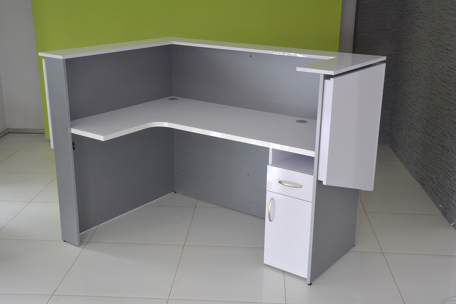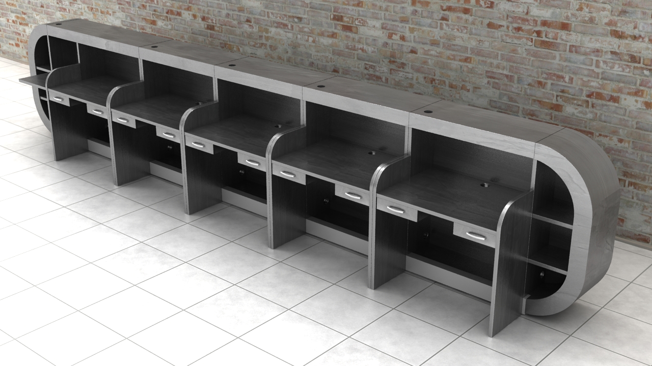 From the inside, the reception counter can have any setup (drawers, shelves, etc.) The final price is fixed individually and depends on the equippement, materials that were used and the size.
