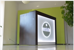 The PRESTIGE version of R44 reception counter is available with a backlit logo placed behind the glass. Exemple