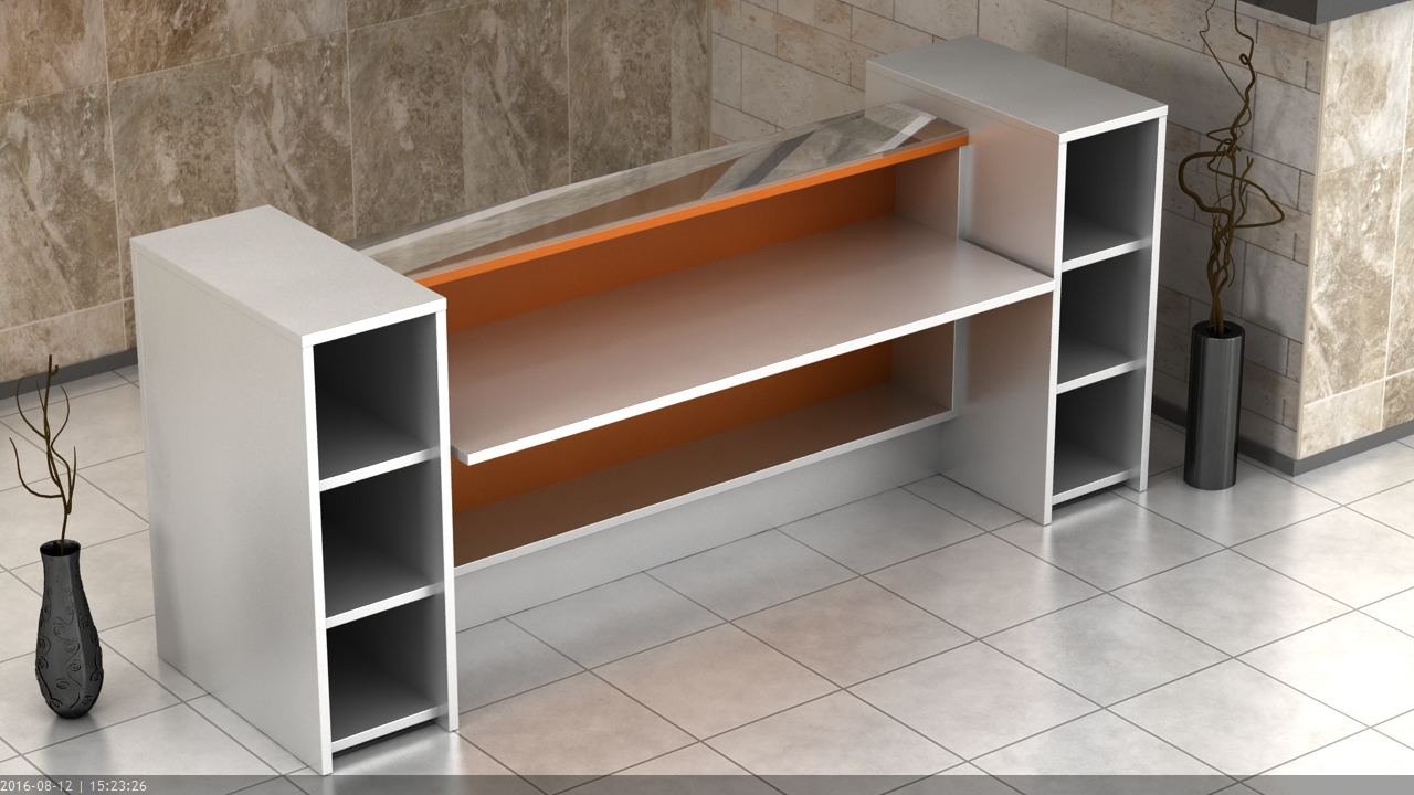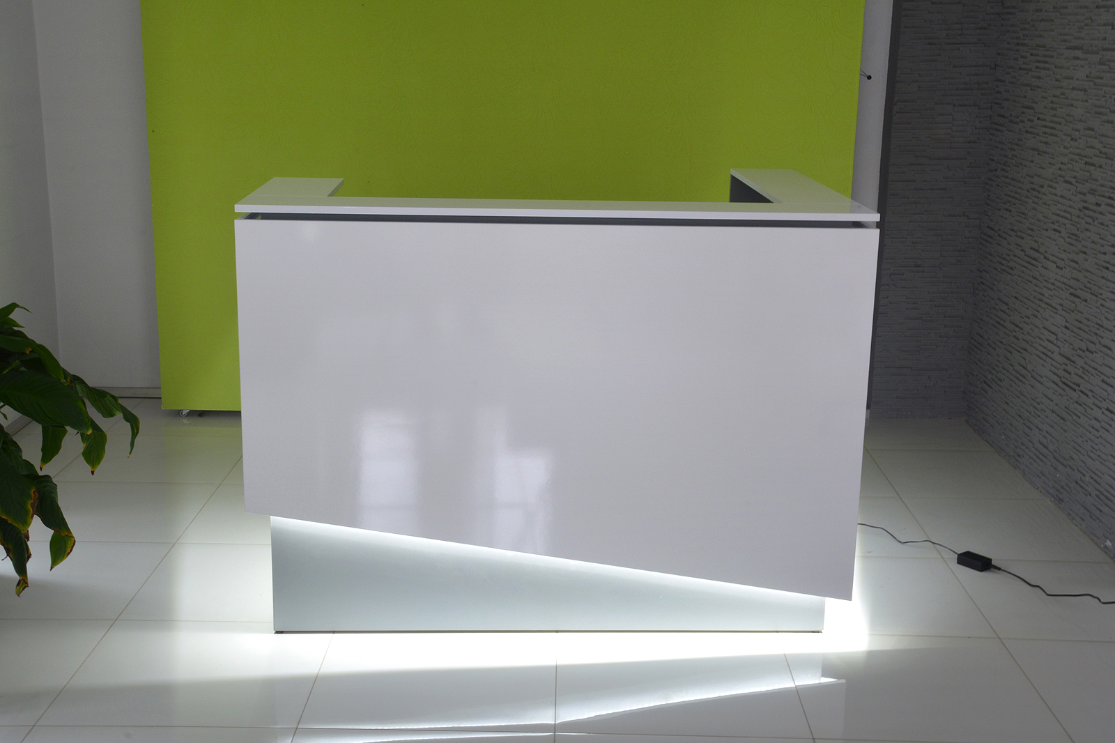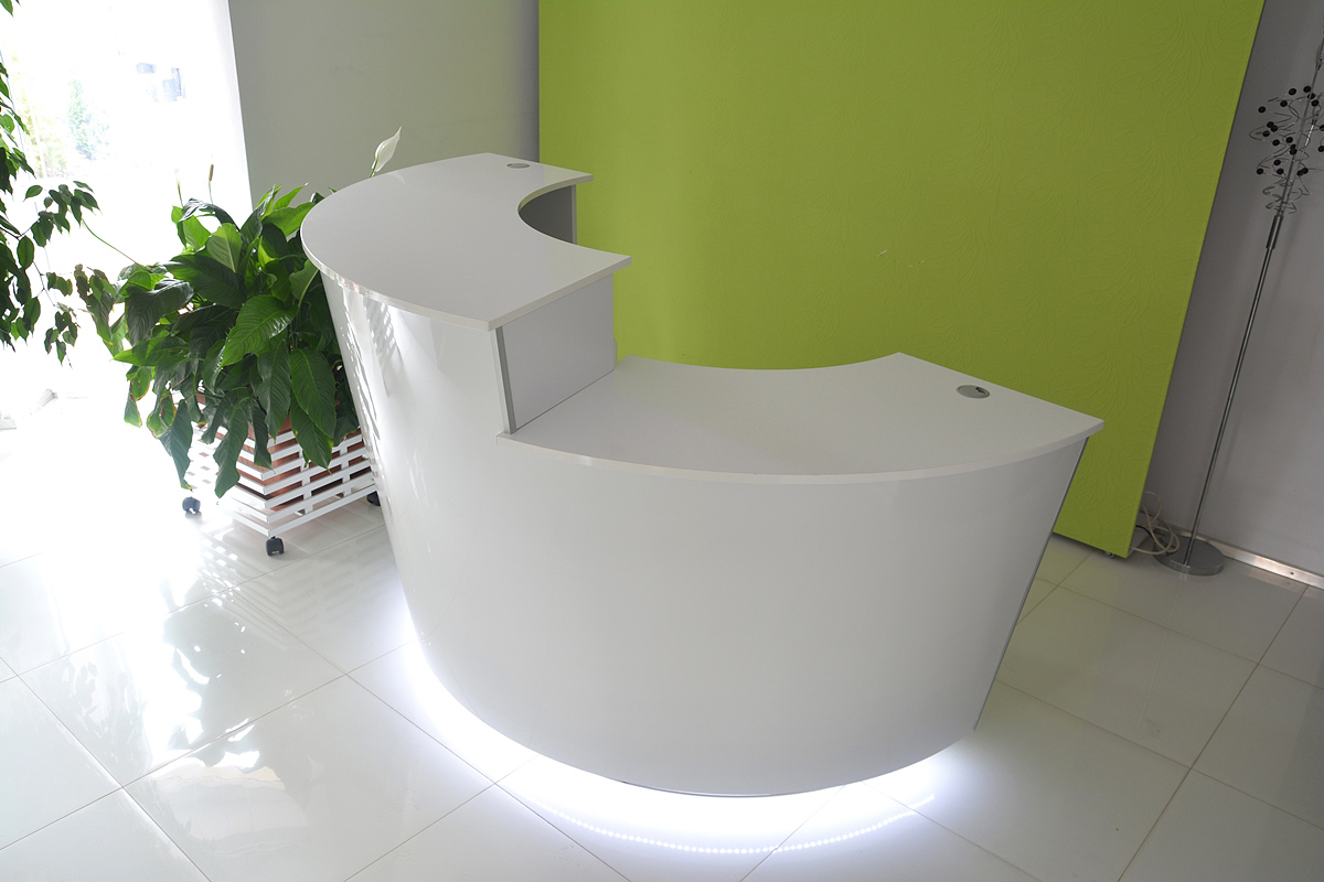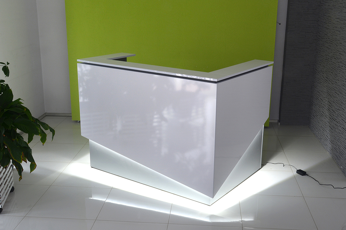 From the inside, the reception counter can have any setup (drawers, shelves, etc.) The final price is fixed individually and depends on the equippement, materials that were used and the size. Reception counter's front is lighted with LED lights ( optionally the upper countertop can be lighted as well)