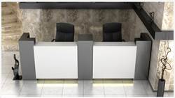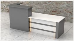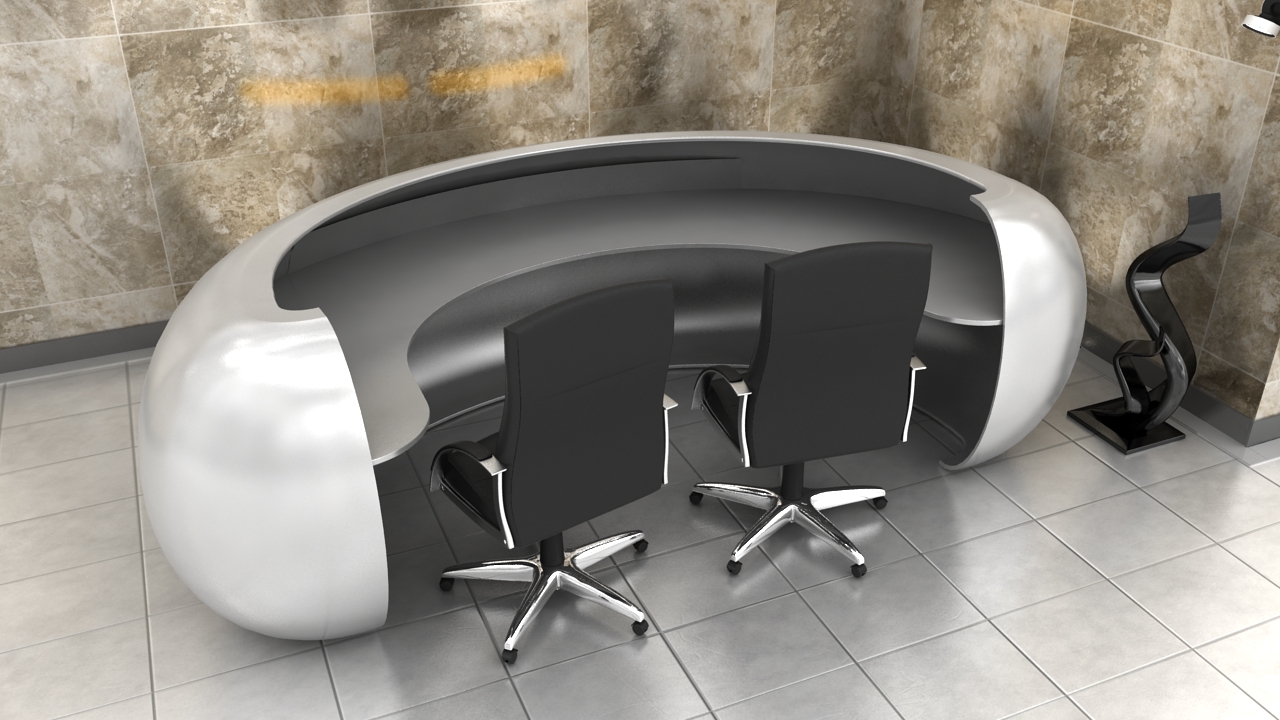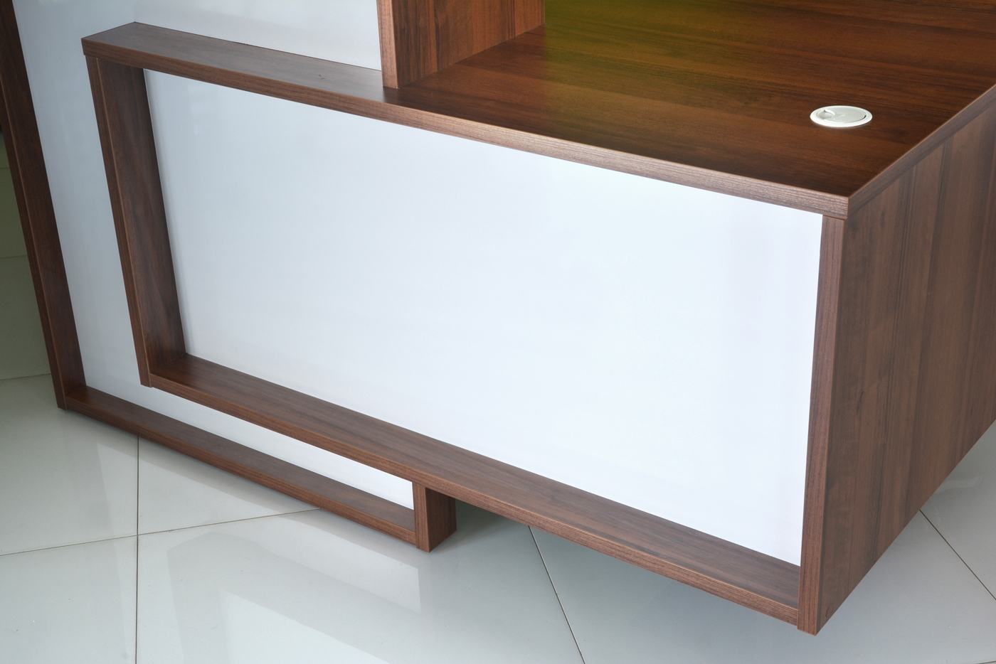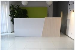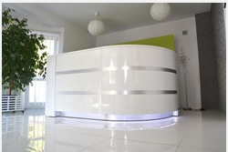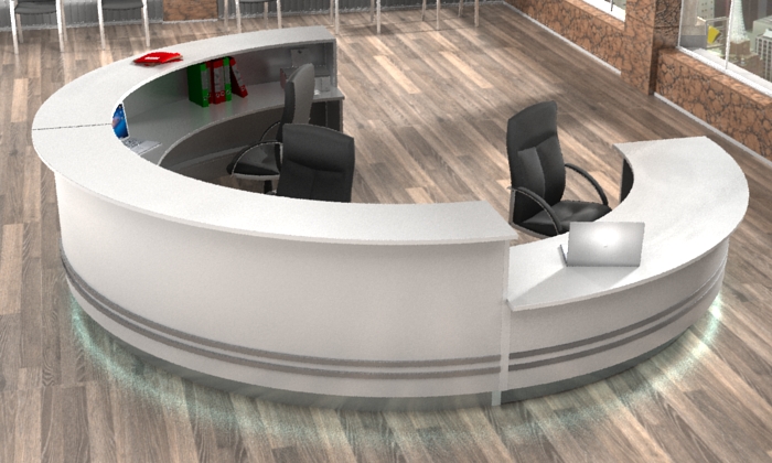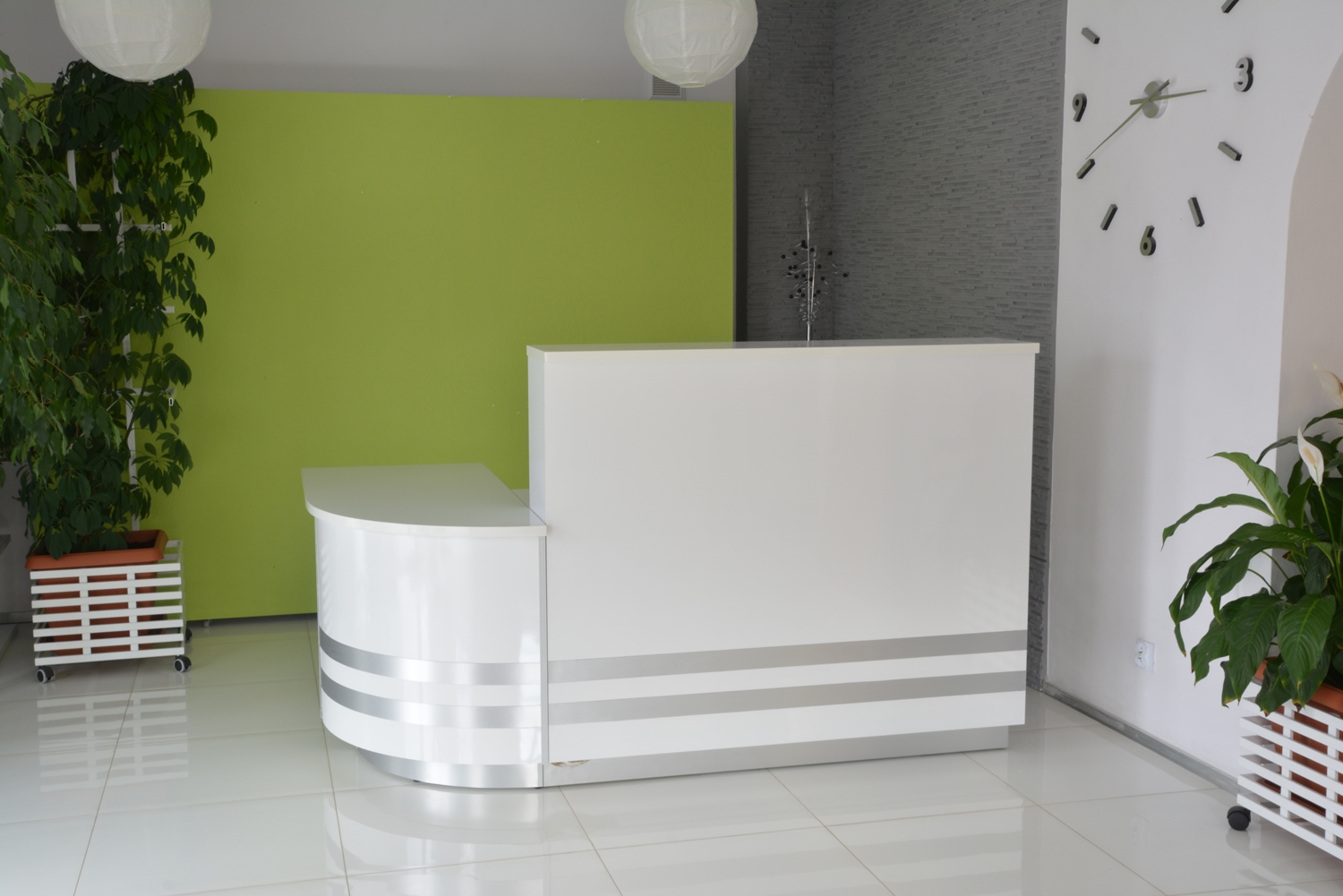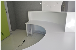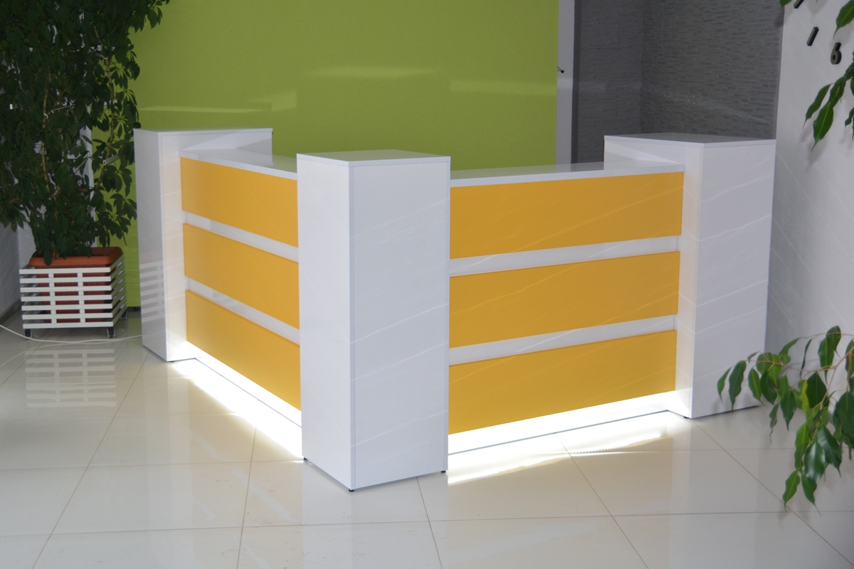 From the inside, the reception counter can have any setup (drawers, shelves, etc.) The final price is fixed individually and depends on the equippement, materials that were used and the size. Reception counter's front is lighted with LED lights ( optionally the upper countertop can be lighted as well)