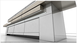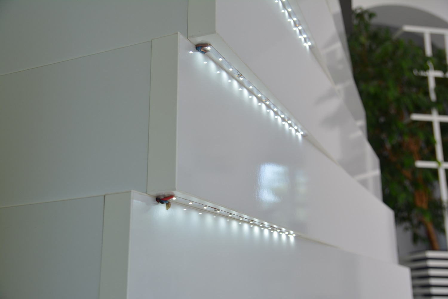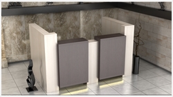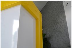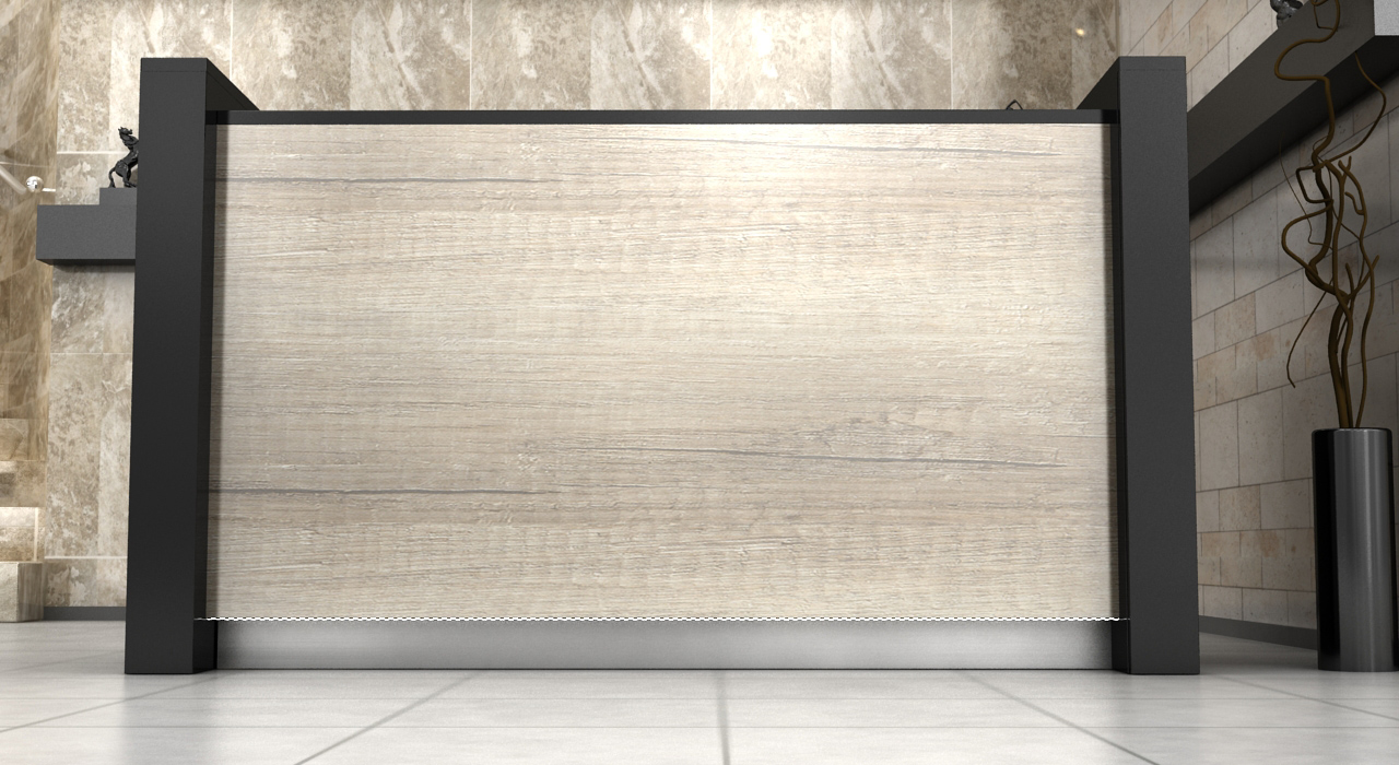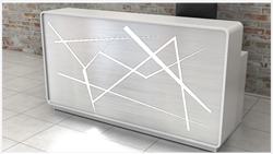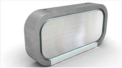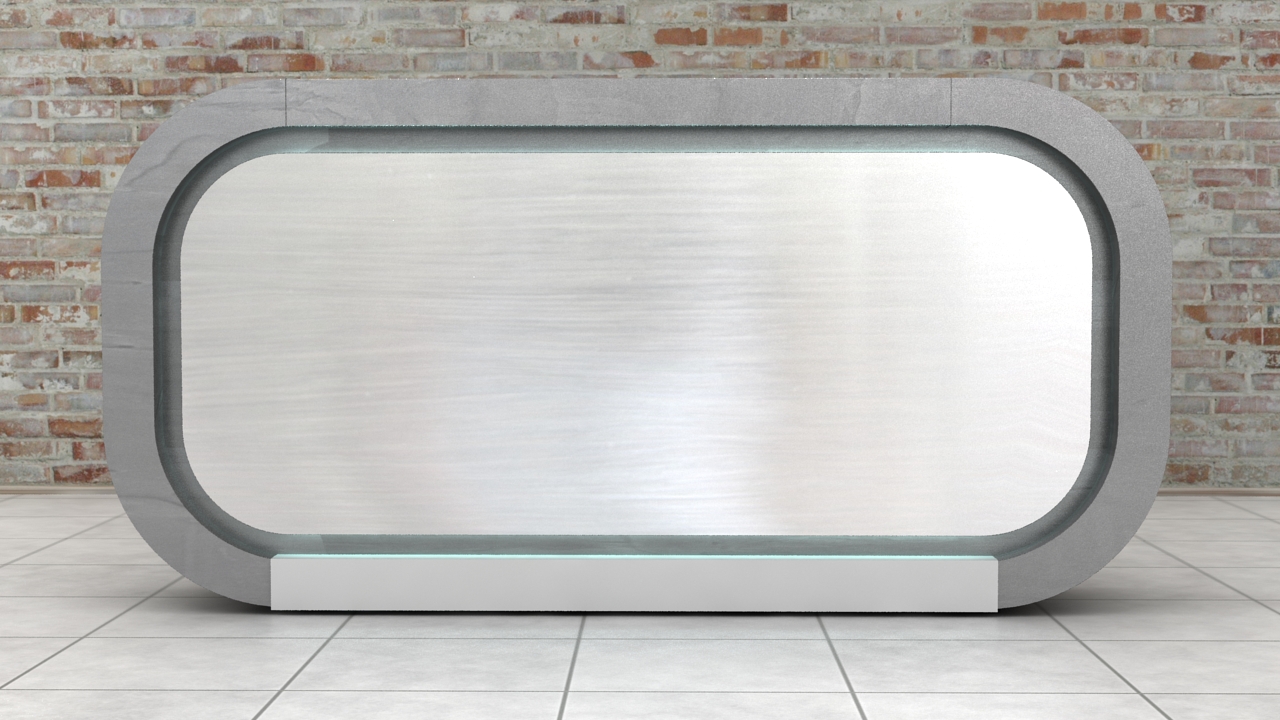 The PRESTIGE version of R5 reception counter is available with a backlit and laser cut logo placed behind the glass.