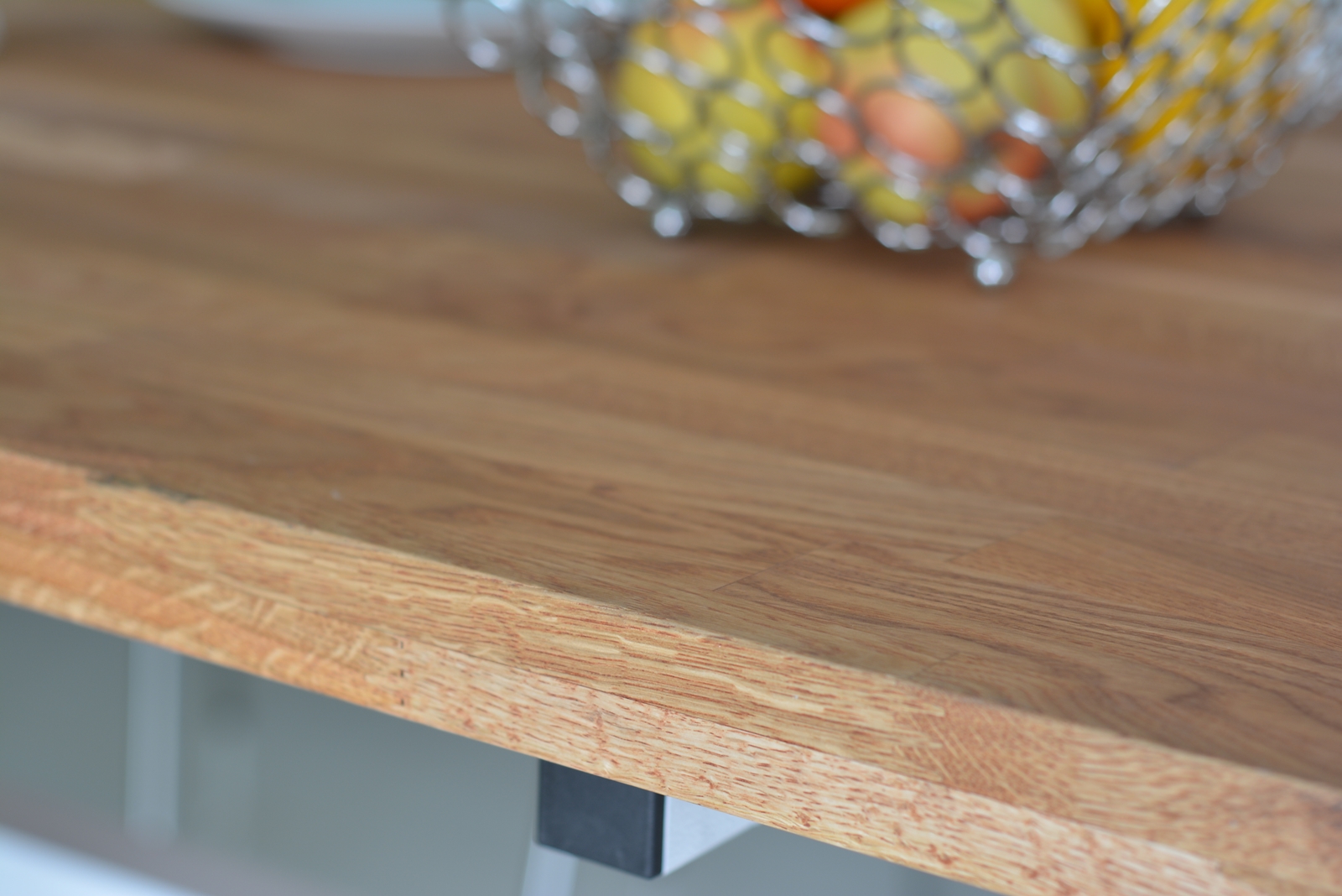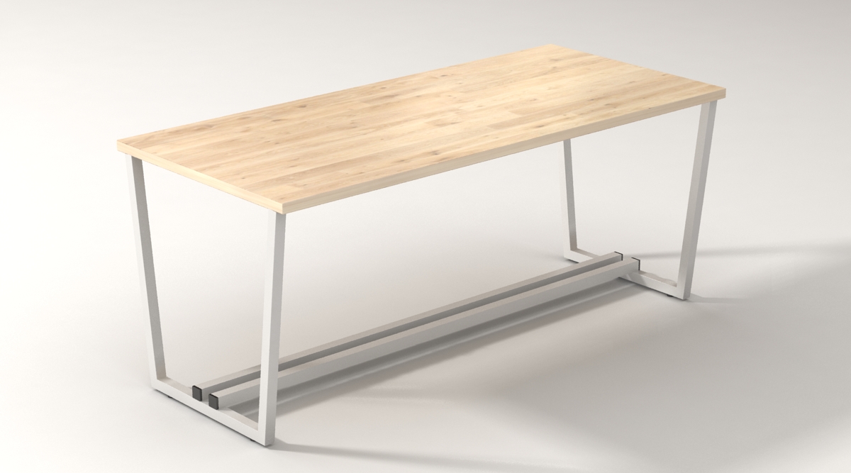 Stół wykonany z najwyższej jakości materiałów. Blat z naturalnego drewna dębowego, które może występować w wersji olejowanej lub lakierowanej . Stelaż stołu wykonany z profila metalowego malowanego proszkowo na kolor biały, srebrny lub czarny (patrz tu).