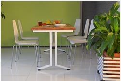 Stół wykonany z najwyższej jakości materiałów. Blaty z naturalnego drewna dębowego, które może występować w wersji olejowanej lub lakierowanej . Stelaże stołów wykonane z profila metalowego malowanego proszkowo na kolor biały, srebrny lub czarny (patrz tu).