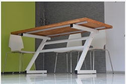 W nowoczesnym wzornictwie meblowym rządzi prostota i minimalizm. Wynikiem charakterystycznego dla nowoczesności swobodnego zestawiania materiałów jest zestawienie w stole T12 efektownego drewnianego blatu z zimnym, prostym stelażem metalowym. Stół pokrewny do modelu T2, wzmocniony dodatkowo metalową poprzeczną belką.