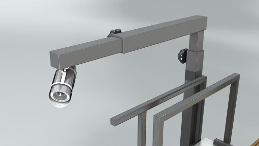 Wysięgnik wykonamy z metalowego profilu.Umożliwia obracanie kamery oraz regulowanie jej wysokości.