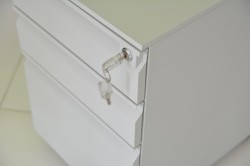 Do takich celów niezbędnikiem jest kontenerek na kółkach z zamkiem ograniczającym dostęp osobom niepowołanym. Uniwersalne wzornictwo, praktyczne rozwiązania i solidne wykonanie to główne cechy kontenerka z 3 szufladami na zamek.