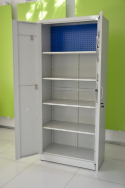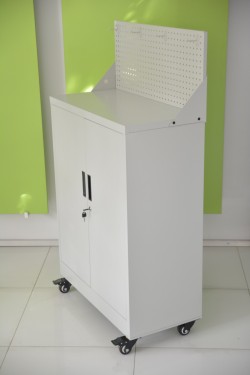 Mobilna szafa metalowa z tablicą perforowaną to praktyczna i mobilna część wyposażenia każdego magazynu czy warsztatu.