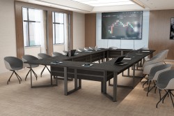 Idąc z duchem czasu po kilku latach powolnego rozwoju działu stołów konferencyjnych powstał pierwszy z tych najnowocześniejszych stół Twist. Odpowiadając na potrzeby coraz to większych korporacji zaczęliśmy tworzyć meble konferencyjne, które w dowolny sposób można konfigurować tworząc kwadraty, prostokąty, koła, elipsy czy stoły w kształcie litery U czy L.